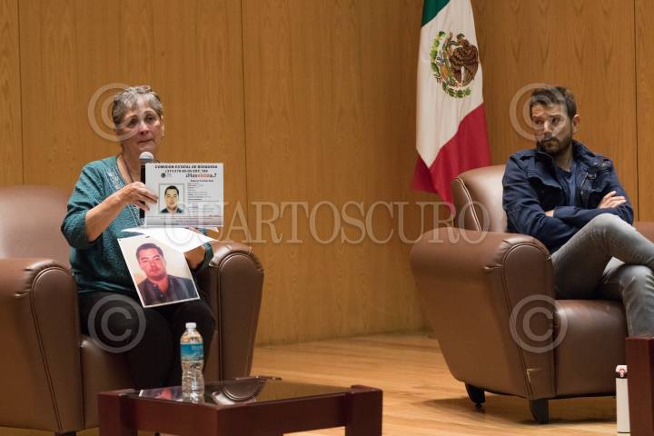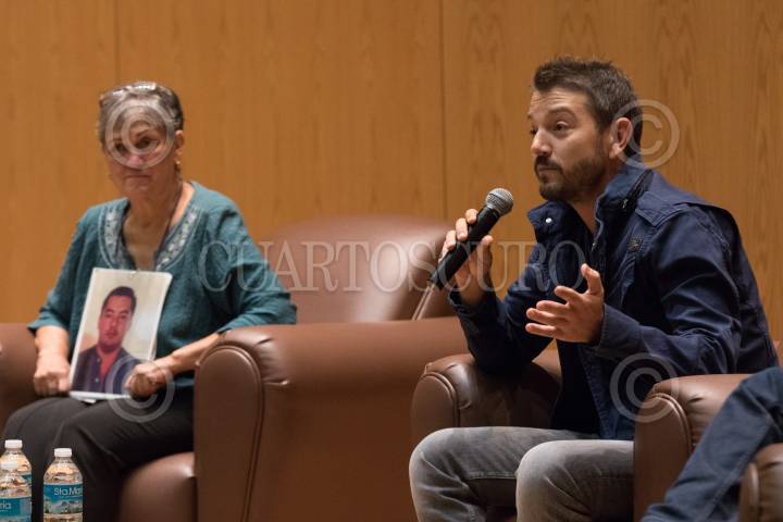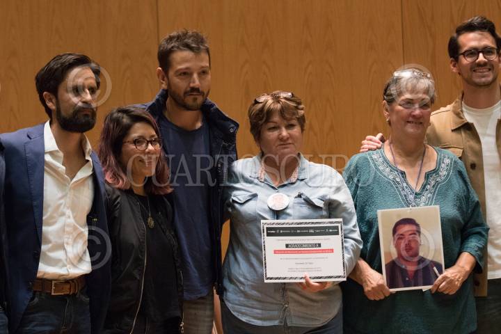 CIUDAD DE MÉXICO, 25SEPTIEMBRE2019.- En las instalaciones del ITAM se presentó el documental "Sin Tregua" impulsado por la iniciativa "El Día Después", este cortometraje muestra la situación de emergencia que vive el país por la desaparición de más de 40 mil personas y de 26 mil cuerpos sin identificar, y hace escuchar la voz de mujeres y hombres que buscan a sus familiares pero ante la falta de recibir el apoyo de las autoridades han tenido que hacerlo ellos mismos con sus propios recursos, como es el caso del Movimiento por Nuestros Desaparecidos. En la presentación estuvieron presentes Araceli Rodríguez y Hermelinda Ruiz Compeán, madres de Luis Ángel León Rodríguez y Roberto Córdova Ruiz, ambos desaparecidos hace más de diez años; el actor Diego Luna y Janet Carmona de Serapaz. FOTO: MOISÉS PABLO /CUARTOSCURO.COM