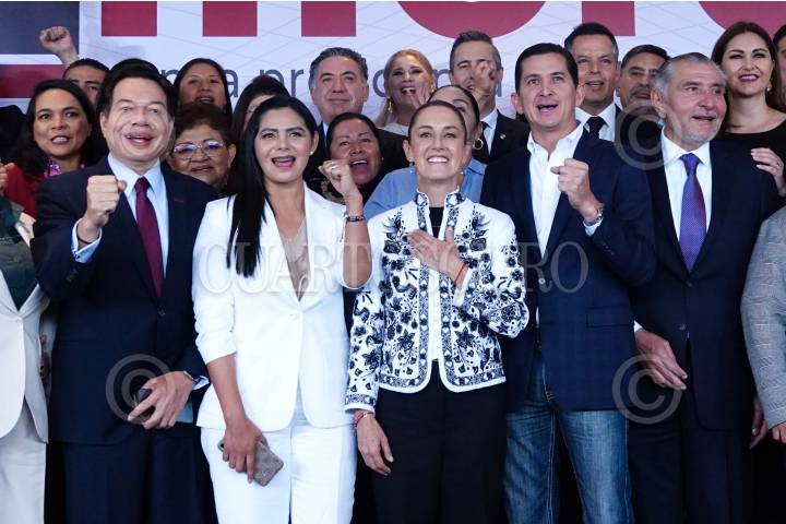 CIUDAD DE MÉXICO, 28AGOSTO2024.- Claudia Sheinbaum, Presidenta Electa de México, anuncio que los senadores del PRD Araceli Saucedo y Jesús Sabino Herrera se suman a la bancada de Morena, esto durante la reunión robaría de los Senadores de Morena. Esto a pesar de que ayer el próximo coordinador parlamentario de Morena, Adán Augusto López, afirmar que su partido no estaban "comprando" senadores para buscar la mayoría calificada. FOTO: GRACIELA LÓPEZ/CUARTOSCURO.COM
