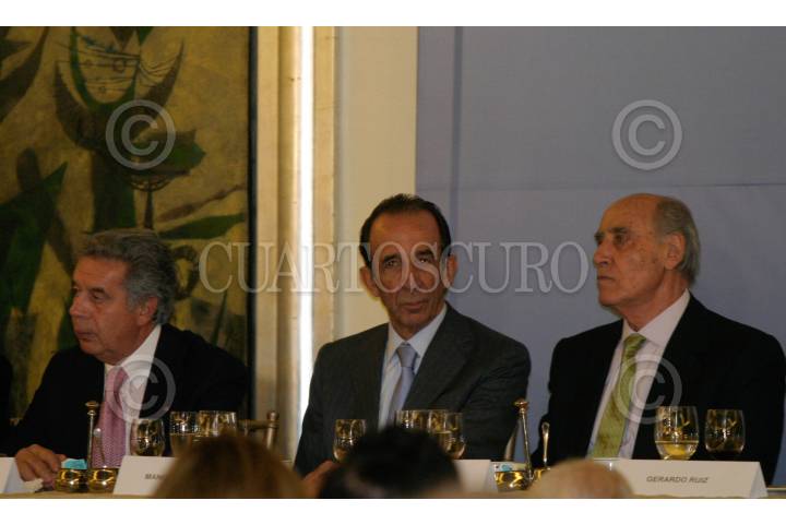 MÉXICO, D.F., 10ABRIL2008.- Manuel Arango (enmedio), fundador del grupo Cifrá, durante la comida de 50 años de la fundación del Club de Industriales. FOTO: SAÚL LÓPEZ/CUARTOSCURO.COM