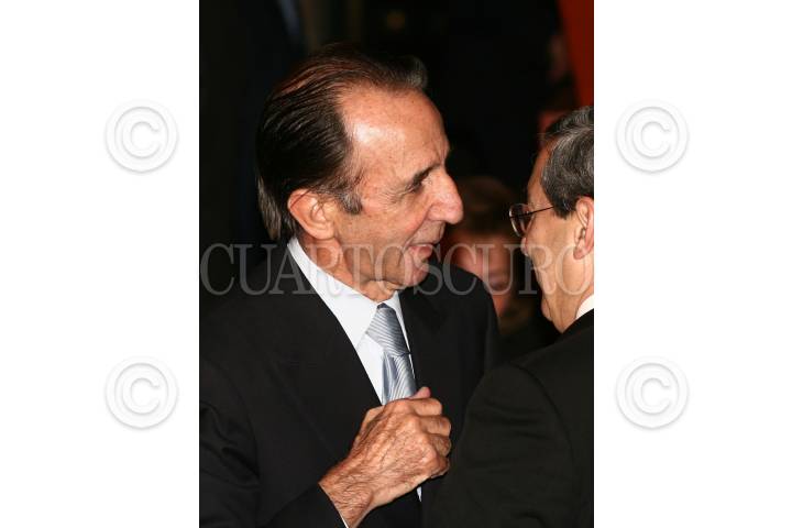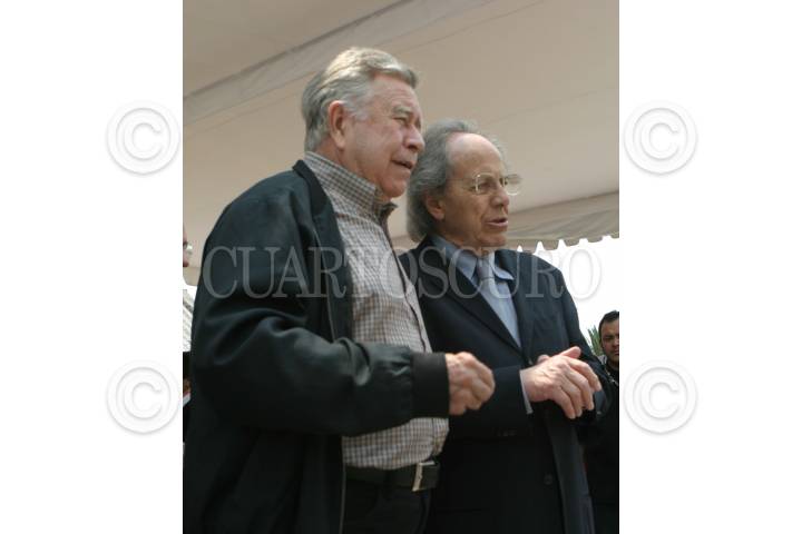MÉXICO, D.F., 28MARZO2007.- El arquitecto Teadoro González de León y el empresario Manuel Arango, durante el homenaje que recibió el arquitecto en la explanada del Auditorio Nacional. FOTO: SAÚL LÓPEZ/CUARTOSCURO.COM