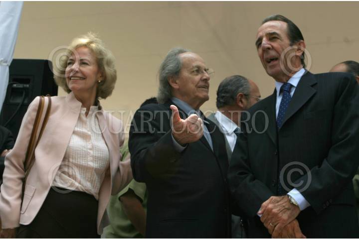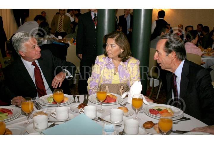 MEXICO, D.F., 18ABRIL2006.- Demetrio Sodi, candidato a la Jefatura de Gobierno del DF por el PAN, Isabel Miranda de Wallace y Manuel Arango, empresario, durante el arranque de la campaña del panista en un hotel de la centro histórico. FOTO: Moisés Pablo/CUARTOSCURO.COM