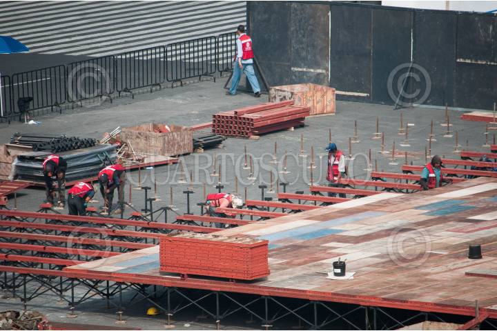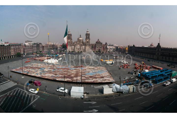 MÉXICO, D.F., 26NOVIEMBRE2015.- Trabajadores del gobierno, comenzaron a instalar lo que será la pista de hielo y el árbol navideño en la plancha del zócalo capitalino, para que miles de personas disfruten de dichas atracciones esta temporada decembrina. FOTO: DIEGO SIMÓN SÁNCHEZ /CUARTOSCURO.COM