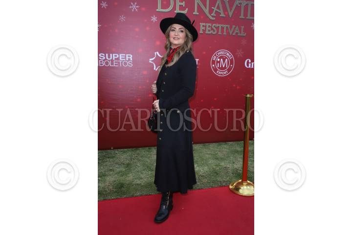 Galilea Montijo durante el encendido del árbol navideño en el Parque Ecológico Navideño.