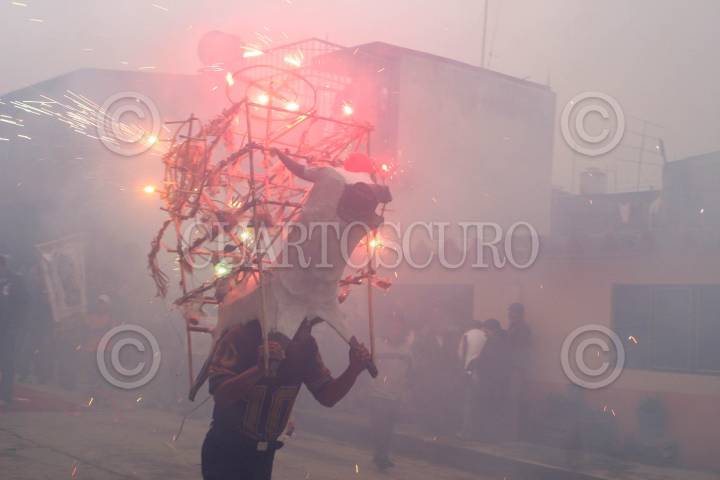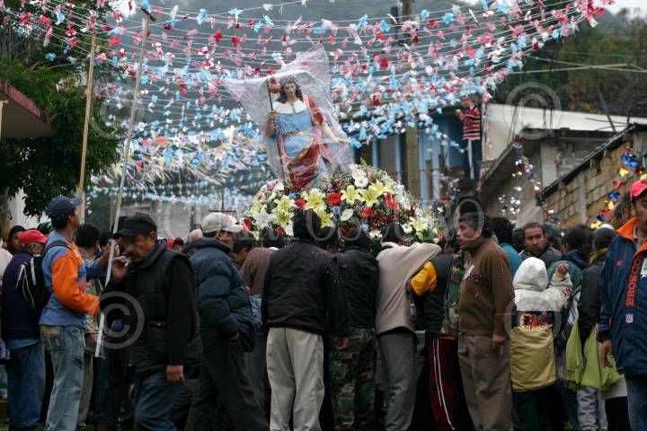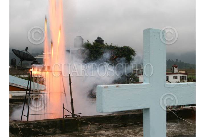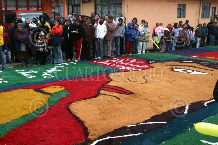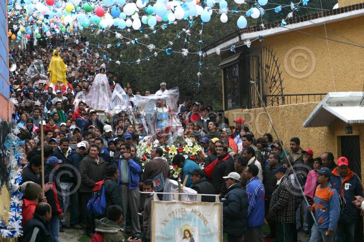 SAN RAFAEL EDOMEX., 28OCTUBRE2007.- Miles de personas asistierón a los festejos de San Rafael, lugar donde aun se conserva la tradición de tapizar las calles y casas con aserrin pintado, toritos pirotecnicos, flores, musica y papel picado para celebrar los festejos del santo San Rafael Arcangel, mismo que es llevado en procesión por todas las calles y barrios del municipio. FOTO: SAÚL LÓPEZ/CUARTOSCURO.COM