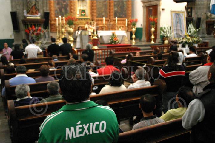 MÉXICO D.F. 11JUNIO2006.- Aficionados del futbol, asistieron a misa en la iglesia de San Miguel Arcangel, para pedirle al Niño Milagroso por la seleccion nacional ya que hoy era su debut en el mundial que se realiza en Alemania. FOTO: Guillermo Perea/CUARTOSCURO.COM