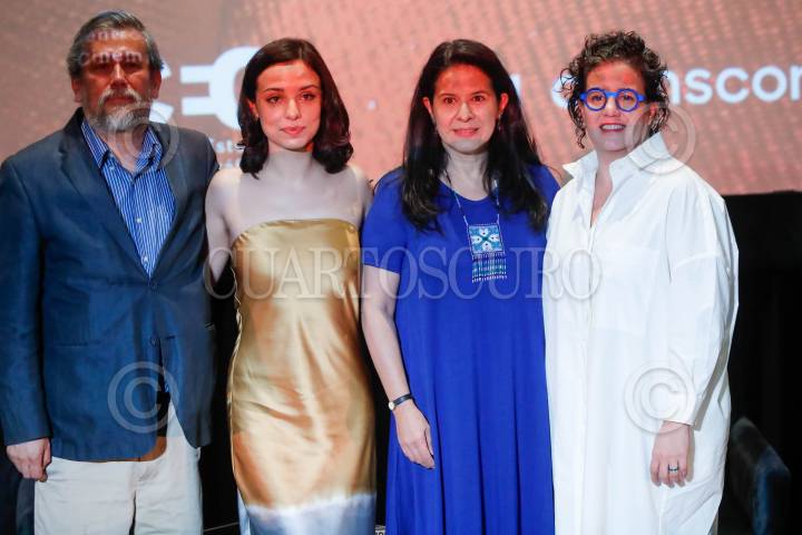 CIUDAD DE MÉXICO, 19JUNIO2024.- Armando Casas, director de la Academia Mexicana de Artes y Ciencias Cinematográficas (AMACC); Lourdes González, secretaria de Cultura de Jalisco, y las actrices Fiona Palomo y Arcelia Ramírez, encabezaron la presentación de los nominados al Ariel Jalisco 2024, en la sala 7 de la Cineteca Nacional. La premiación se llevará a cabo el 7 de septiembre en el Teatro Degollado. FOTO: MOISÉS PABLO/CUARTOSCURO.COM