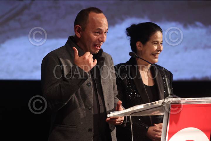 LEÓN, GUANAJUATO, 20JULIO2024. Roberto Fiesco y Arcelia Ramírez durante el homenaje al director Arturo Ripstein por parte del Festival Internacional de Cine de Guanajuato (GIFF) en su edición número 27, en el Teatro Bicentenario. FOTO: EDGAR NEGRETE LIRA/CUARTOSCURO.COM
