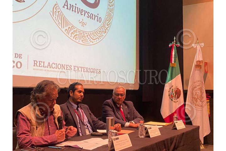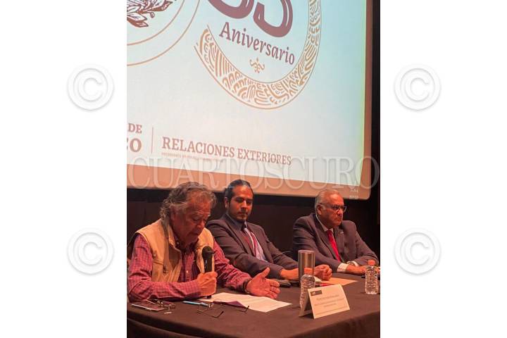 CIUDAD DE MÉXICO, 07NOVIEMBRE2023.- Pedro Valtierra, director de la revista y agencia Cuartoscuro; Jorge Zamora, jefe de departamento de Fototeca Amalia González y Juan Carlos Valdez, director del Sistema Nacional de Fototecas-Fototeca Nacional del INAH, durante el encuentro “Cincuenta y cinco años Construyendo la Memoria” que se llevó a cabo en el Ex Colegio de la Santa Cruz de Tlatelolco.FOTO: MARÍA DE LA PAZ CHÁVEZ/CORTESÍA CUARTOSCURO.COM