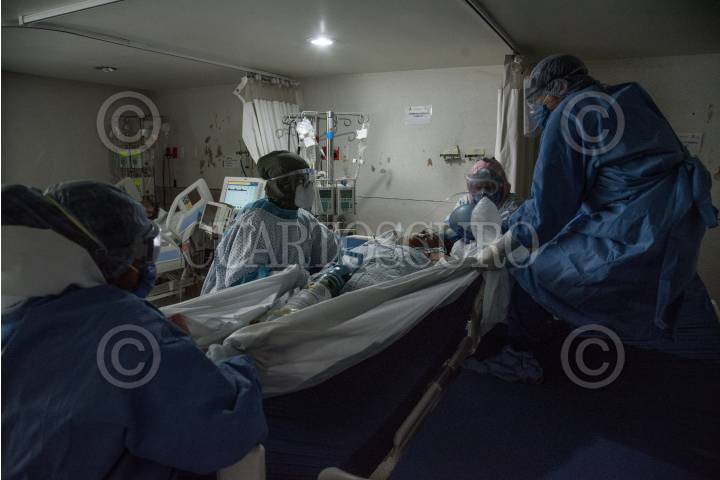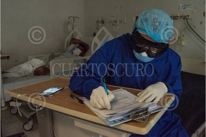 Personal médico registra los datos clínicos de un paciente internado por covid-19 en el El Hospital General de Atizapán.