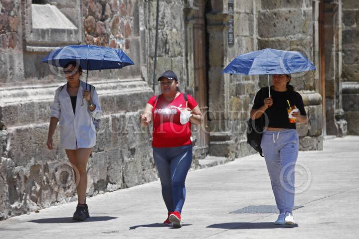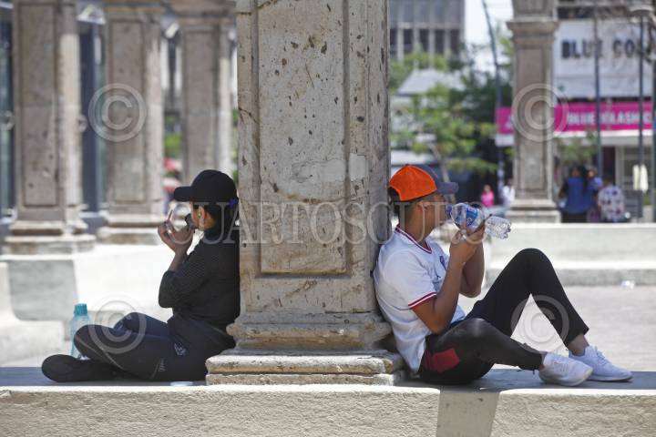 Cuatro jóvenes mujeres, caminan por un andador ubicado en el centro de la ciudad con sus bebidas refrescantes, esto para mitigar la sed que ocasiona el calor.
