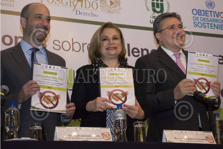 CIUDAD DE MÉXICO, 31MAYO2017.- Luis Raúl González Pérez, ombudsman nacional; Arely Gómez González, secretaria de la Función Pública, y Pedro Salazar Ugarte, director del Instituto de Investigaciones Jurídicas de la UNAM, durante la inauguración del foro “Corrupción y sus implicaciones sobre el pleno goce y ejercicio de los derechos humanos en México”. Luis Rául Gónzalez indicó que la corrupción sigue manteniéndose como uno de los principales problemas que más preocupan a la sociedad y perjudican la imagen de las instituciones democráticas. FOTO: MARIO JASSO /CUARTOSCURO.COM