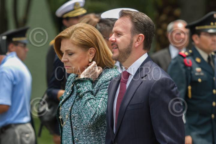CIUDAD DE MÉXICO, 26JULIO2017.- Arely Gómez, secretaria de la Función Pública, y Francisco Guzman Ochoa, Jefe de la Oficina de la Presidencia, al terminar la ceremonia de entrega de menciones honoríficas y reconocimiento a unidades y persona del Ejército, Armada y Fuerza Aérea, en la explanada del Campo Militar no. 1-A. FOTO: MOISÉS PABLO /CUARTOSCURO.COM