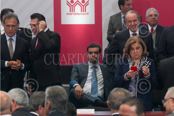 CIUDAD DE MÉXICO, 04DICIEMBRE2017.- Miguel Ángel Yunes Linares, gobernador de Veracruz; Alejandro Cárdenas Moreno, gobernador de Campeche, Antonio Echevarría, gobernador de Nayarit; Juan Manuel Carreras López, gobernador de San Luis Potosí, y Arely Gómez, secretaria de la Función Pública, durante la Asamblea General del Infonavit, en su sede general. FOTO: MOISÉS PABLO /CUARTOSCURO.COM
