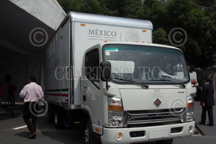 CIUDAD DE MÉXICO, 14MARZO2018.- Arely Gómez, secretaria de la Función Púbica, durante la presentación y puesta en marcha oficial de los Laboratorios Móviles de Verificación de Calidad de Materiales en la Obra Pública, en la sede de la secretaria. El fin de las nuevas unidades será verificar que las construcciones se realizan con la calidad y los materiales eficientes. FOTO: GALO CAÑAS /CUARTOSCURO.COM