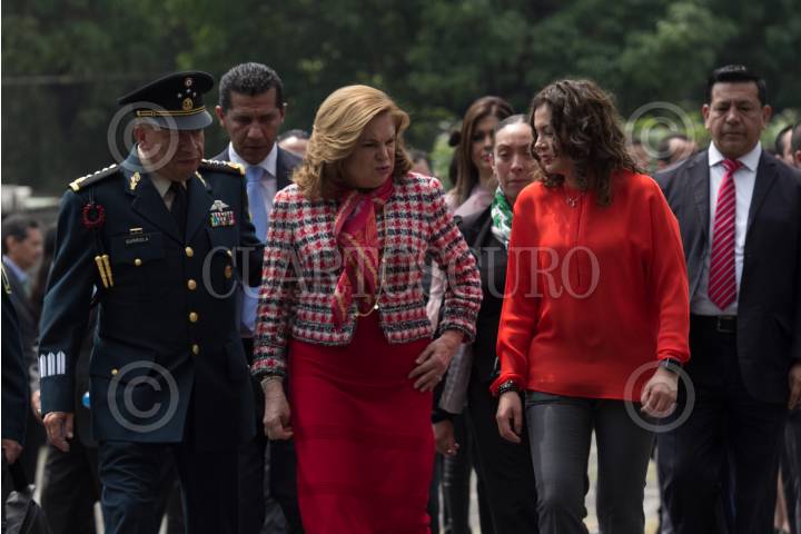 CIUDAD DE MÉXICO, 22JUNIO2017.- El general Salvador Cienfuegos Zepeda, secretario de la Defensa Nacional, y Arely Gómez, titular de la Secretaría de la Función Pública (SFP), encabezaron la inauguración del taller “Obligaciones y responsabilidades bajo el esquema del Sistema Nacional Anticorrupción”, impartido en el Centro Militar de Ciencias de la Salud. El objetivo del curso es que 2,200 participante de Administración Pública, entre ellos personal militar y de marina, identifique los nuevos principios que deben cumplir los servidores públicos con el fin de prevenir hechos irregulares y prácticas ilegales. FOTO: GALO CAÑAS /CUARTOSCURO.COM
