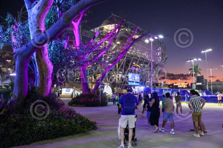 ACAPULCO, GUERRERO, 27FEBRERO2025.- . Aspectos del estadio Arena GNP Seguros en donde se juega la cuarta jornada de juegos del Abierto Mexicano de Tenis 2025. FOTO: CARLOS ALBERTO CARBAJAL/CUARTOSCURO.COM