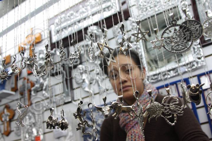 MÉXICO, D.F., 26NOVIEMBRE2008.- En algunas lineas del metro se sitúan comercios de joyería y platería que ofrecen , collares , colguíjes, anillos, aretes y hasta tetragramatones para el adorno personal. FOTO:COSME RADA/CUARTOSCURO.COM