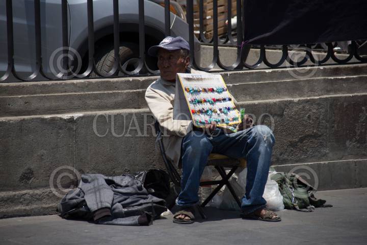 CIUDAD DE MÉXICO, 11ABRIL2019.- Un comerciante vende aretes hechos a mano, atrás de la Catedral Metropolitana. FOTO: GRACIELA LÓPEZ /CUARTOSCURO.COM