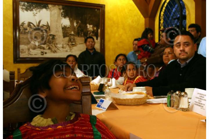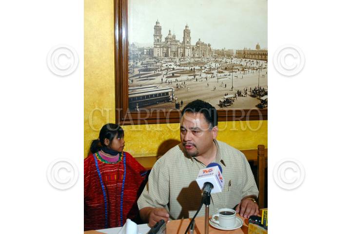 MÉXICO,D.F 15ENERO2008.- Una niña triki juega mientras David Arevalo Méndez Presidente del Frente Nacional Comercio Informal da a conocer en conferencia de prensa sobre la reunión que mantendria esta tarde con el jefe de gobierno. FOTO: SASHENKA GUTIERREZ/CUARTOSCURO.COM