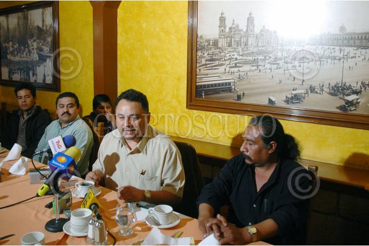 México, D.F., 20JUNIO2004.-David Arévalo Mendez, vocero de comerciantes ambulantes, durante una conferencia de prensa en la cual dieron a conocer la creación de un Frente Nacional del Comercio Informal. FOTO: Moisés Pablo/CUARTOSCURO.COM