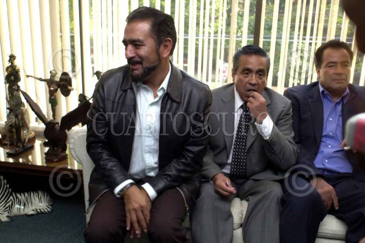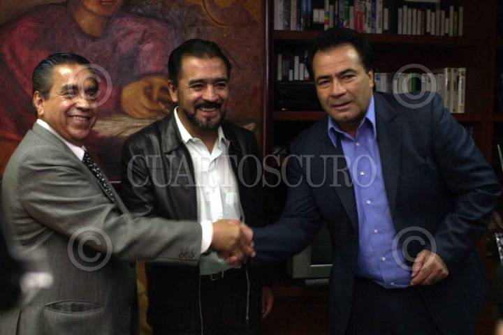Francisco Hernández Juárez, líder de los telefonistas, en companía de Alejandro Espino Arevalo, líder de los trabajadores del Metro anunciaron que de no llegar a un acuerdo, se uniran a los trabajadores del GDF en sus movimlizaciones. FOTO: Juan Pablo Zamora/CUARTOSCURO.COM
