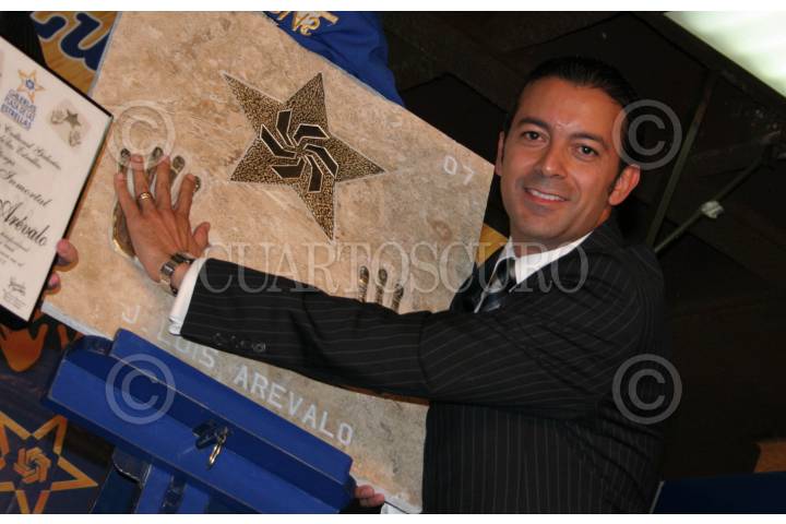 MÉXICO, D.F., 03MARZO2007.- En la plaza de las Estrellas, plasmó sus huellas Jose Luis Arevalo, periodista y corresponsal de Televisa en el extranjero, a quien se le reconocio su labor periodístico durante estos años. FOTO: EZEQUIEL TLAXCALA/CUARTOSCURO.COM