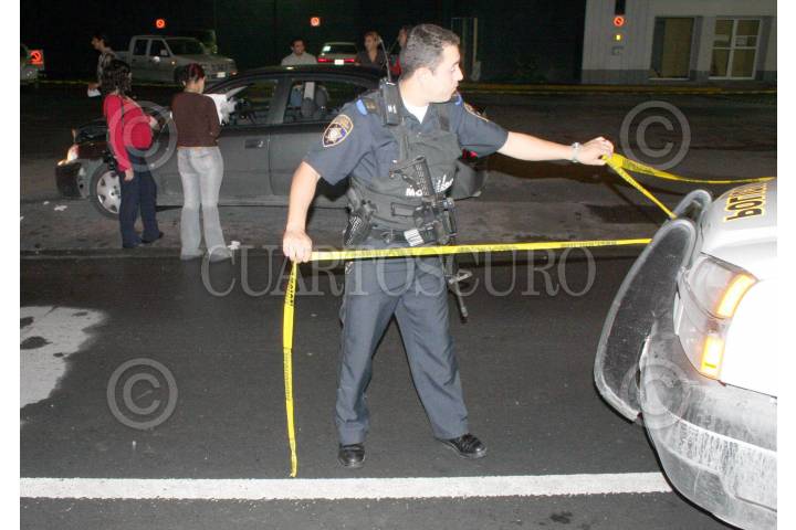 MONTERREY, NUEVO LEON 03SEPTIEMBRE2007.- La ejecución número 90 del año en la entidad se registra hoy por la noche cuando un hombre fue abordado en su automóvil por unos sicarios que viajaban en una camioneta y que le dispararon con fusiles de alto poder, en el Centro de la Ciudad. En el auto se encontró una credencial a nombre de Sergio Augusto Flores Arévalo, por lo que la Policía investiga si se trata del ahora ejecutado. FOTO: PEDRO KRISTIAN LOPEZ/CUARTOSCURO.COM