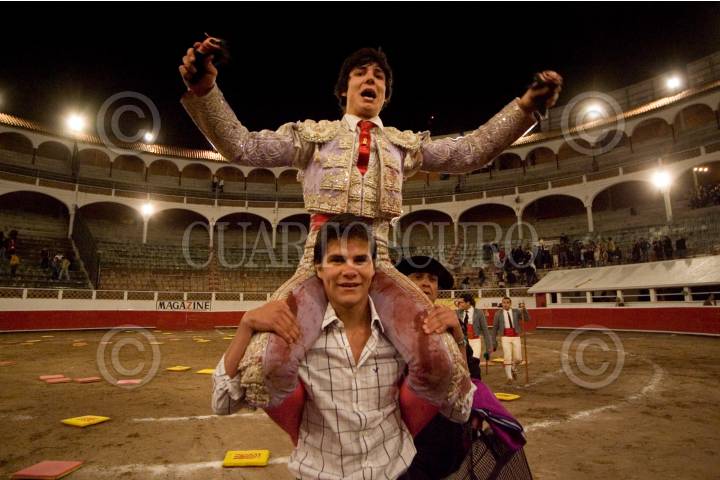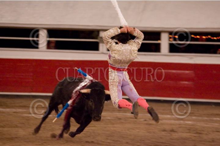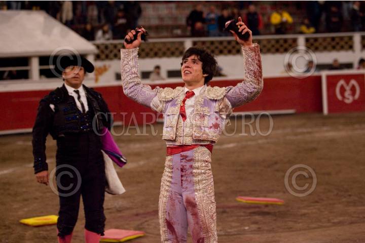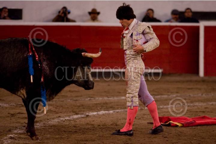 QUERÉTARO, QUERÉTARO, 01ENERO2010.- El novillero José Arevalo durante su actuación en la apertura de la temporada de toros en la Plaza Santa María de Querétaro. En esta corrida salió en hombros al cortar cuatro orejas. FOTO: DEMIAN CHÁVEZ/CUARTOSCURO.COM