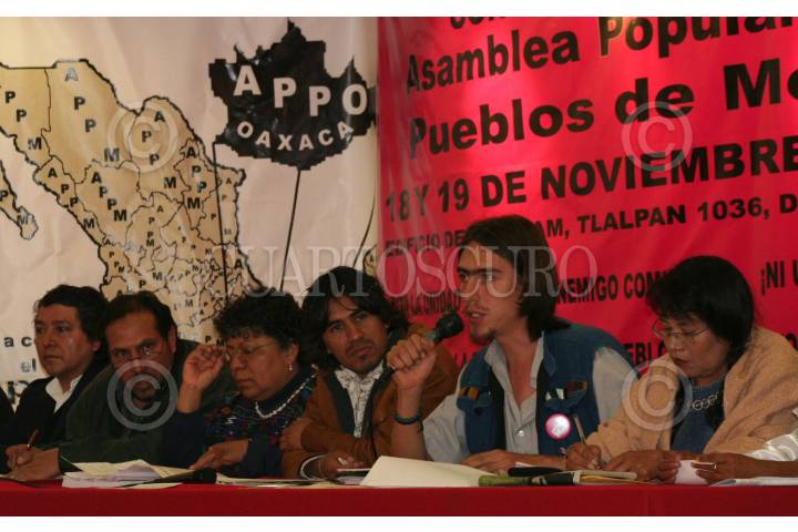 MÉXICO, D.F. 18NOVIEMBRE2006.- Se realizó la constitución de la asamblea popular de los pueblos de México, donde participarán diversos grupos sociales. En la imagen Argelia Ayala, representante del grupo emiliano Zapata, Tonantzin Miranda, del frente popular revolucionario y Jorge Ramos, secretario general del SITUAM, Samuel Hernández Morales, del consejo estatal de la APPO. FOTO: PAOLA HIDALGO/CUARTOSCURO.COM