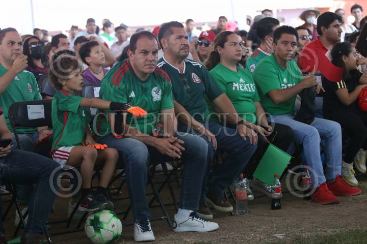Cuauhtémoc Blanco, gobernador de Morelos, se toma fotos aficionados durante el partido de fútbol Argentina vs México.