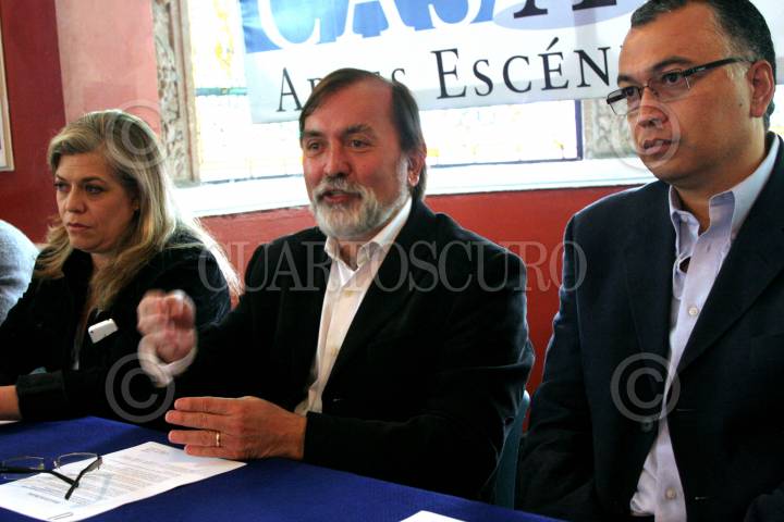 México D.F., a 21 de Mayo de 2008.- Casa Azul, centro de formación escénica del grupo Argos, lanzo la convocatoria para la carrera de Dirección Escénica. Este anuncio fue hecho este medio día en las instalaciones del centro, estuvieron presentes Ana Celia Urquidi, Epigmenio Ibarra y Ignacio Flores de la Lama. FOTO: VICTORIA VALTIERRA/CUARTOSCURO.COM