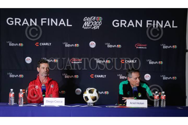 Diego Cocca, entrenador del Atlas, y Ariel Holan, entrenador de León, durante el Día de Medios del Torneo Grita México A21 de la Liga MX.
