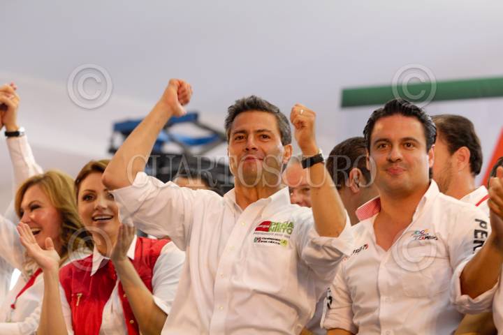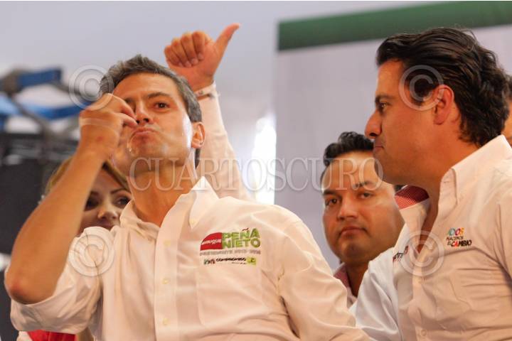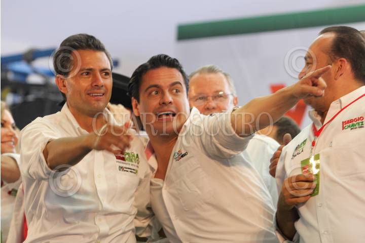 LAGOS DE MORENO, 23JUNIO2012.- Enrique Peña Nieto, candidato de la coalición “Compromiso Por México” asistió al cierre de campaña del candidato a gobernador Aristoteles Sandoval . Durante el acto estuvo acompañado de su esposa Angélica Rivera, del presidente de PRI, Pedro Joaquín Codlwell y de los Gobernadores de Chihuahua, Aguascalientes y Quintana Roo. FOTO: SAÚL LÓPEZ /CUARTOSCURO.COM