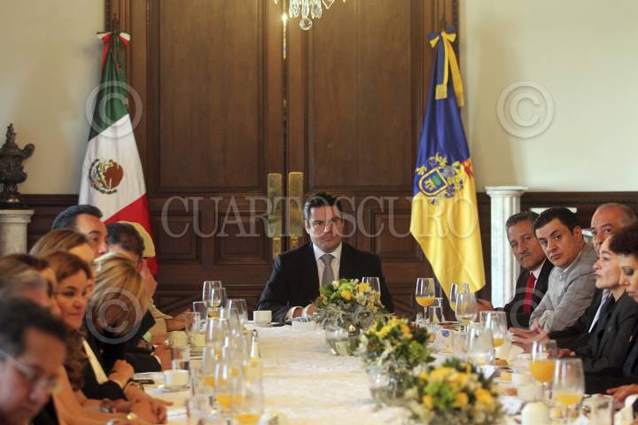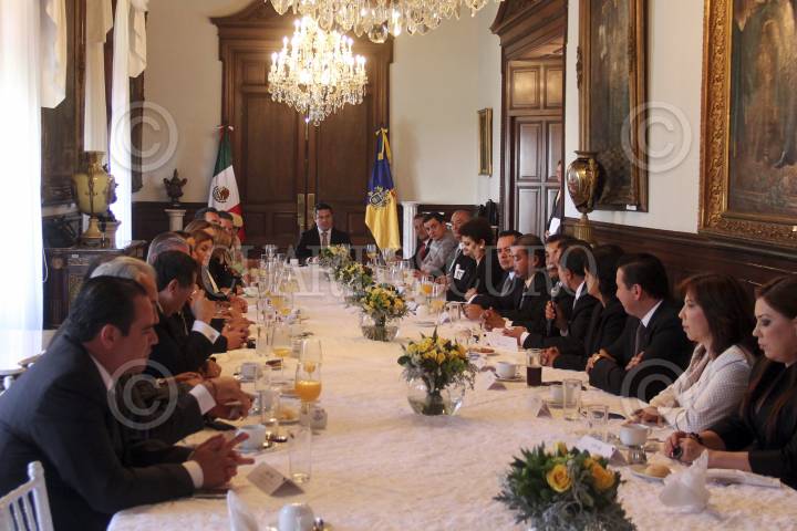 GUADALAJARA, JALISCO, 25MARZO2013.- Jorge Aristóteles Sandoval Díaz, gobernador del Estado, se reunió en Palacio de Gobierno con los órganos legislativos federales como Senadores y Diputados de todos lo partidos, con la intención de crear una agenda conjunta entre las partes y sacar adelante los temas que el estado requiere. FOTO: FERNANDO CARRANZA /CUARTOSCURO.COM