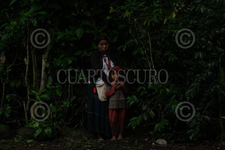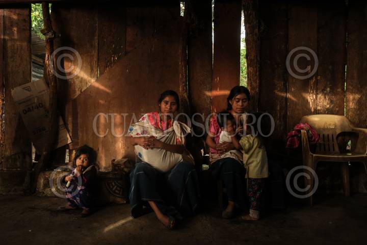 Una familia de desplazados de la zona colindante al río más cercana a la comunidad de Santa Martha, Chenalhó.