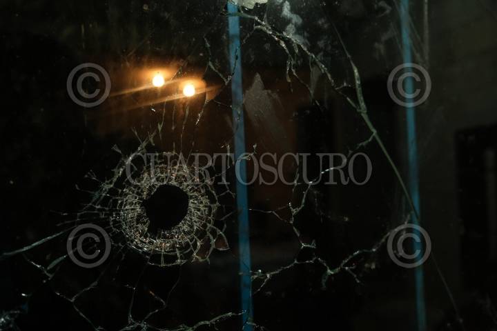 Vista de uno de los impactos de bala en una de las ventanas de una de las casas de la comunidad de Coco, la familia abandonó esta edificación hace un par de años.
