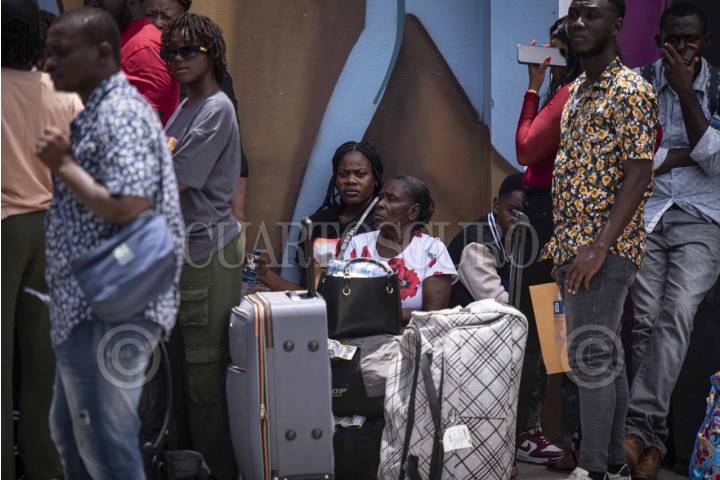 CABO HAITIANO, HAITÍ, 24ABRIL2024.- Miles de haitianos han abandonado el país en los últimos meses a causa de las crecientes olas de violencia. El aeropuerto de la ciudad de Cabo Haitiano es el único puerto aéreo de salida y entrada, por lo que cientos de haitianos, provenientes de distintas regiones del país, se arremolinan en este diariamente a la espera de aborar un vuelo hacia los Estados Unidos. Fundada en 1670 por los colonos franceses, y situada en la costa norte de Haití, la ciudad de Cabo Haitiano, que otrora fue la capital colonial de la isla, es la segunda ciudad más importante de Haití. Los úlitmos meses, miles de haitianos provenientes de Puerto Príncipe han buscado refugio en ella huyendo de la violencia generada por los grupos armado, otros miles han huído del país. De enero a Marzo del presente año, más de 2500 personas han sido asesinadas o heridas fruto de la violencia y disputa de los márgenes urbanos entre dichos grupos y la policía nacional. La inestabilidad política y la violencia urbana que precedía la renuncia, en marzo del presente año, del ex primer ministro Arie Henry e, incluso, el asesinato en julio de 2021 del entonces presidente haitiano, Jovenel Moise, se han recrudecido en los últimos meses. Después de ser escenario de disparos e intentos de apropiación, el aeropuerto principal del país, el de Puerto Príncipe, permanece cerrado desde prinicpios de marzo, los grupos armados han ataco los prinicpales edificios gubernamentales, quemado estaciones de policía, y de las dos mayores prisiones de la capital han sido liberados más de 4,000 reos. Todo esto a la par que las calles de la capital y los caminos de acceso a ella son escenaros de disputa y enfrentamientos, comenzando ya a contarse las víctimas por balas perdidas. FOTO: PEDRO ANZA /CUARTOSCURO.COM