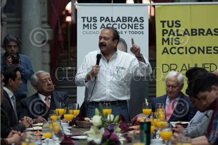 CIUDAD DE MÉXICO, 11ENERO2018.- Armando Ahued, precandidato a la jefatura de gobierno por el Partido de la Revolución Democrática (PRD), asistió a un hotel de la colonia Juárez para reunirse con ex campeones y peleadores profesionales del boxeo mexicano, a quienes agradeció el apoyo y expresó su admiración y compromiso por la salud de los deportistas. FOTO: GALO CAÑAS /CUARTOSCURO.COM