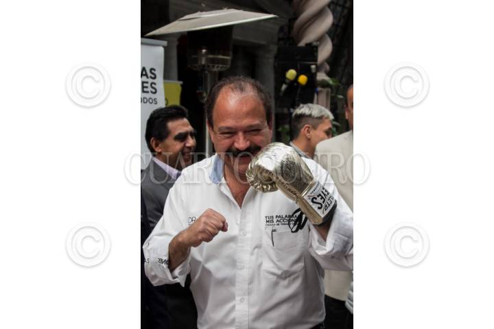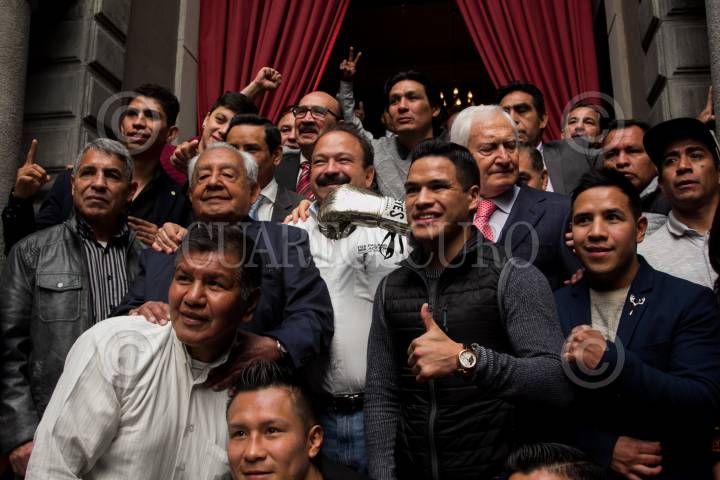 CIUDAD DE MÉXICO, 11ENERO2018.- Armando Ahued, precandidato a la jefatura de gobierno por el Partido de la Revolución Democrática (PRD), asistió a un hotel de la colonia Juárez para reunirse con ex campeones y peleadores profesionales del boxeo mexicano, a quienes agradeció el apoyo y expresó su admiración y compromiso por la salud de los deportistas. En imagen, el boxeador Rafael Márquez. FOTO: GALO CAÑAS /CUARTOSCURO.COM