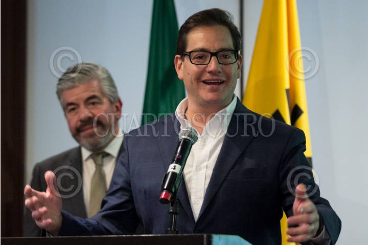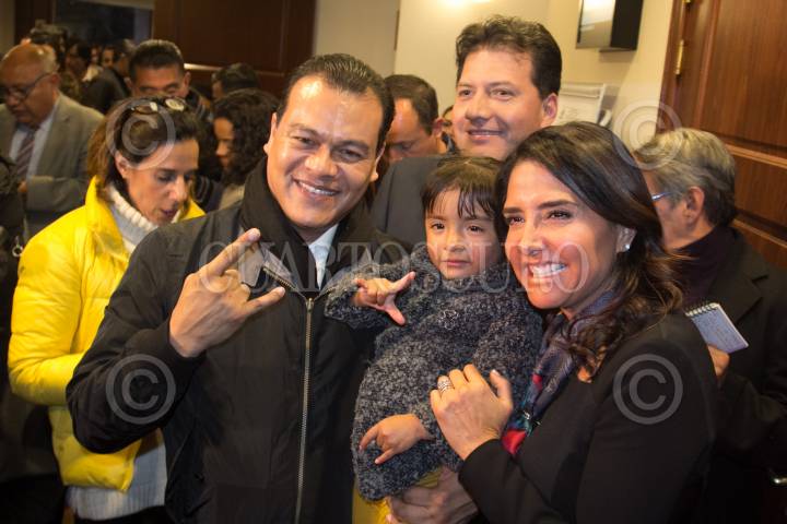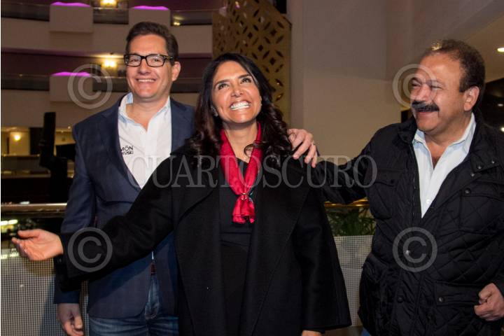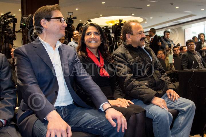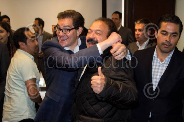 CIUDAD DE MÉXICO, 17ENERO2018.- El perredista Juan Zepeda y Alejandra Barrales, precandidatos a la jefatura de gobierno de la capital por el Partido de la Revolución Democrática (PRD), tras señalar los resultados de las encuestas de preferencia para designar a Barrales como la candidata oficial del Frente Amplio. FOTO: GALO CAÑAS /CAURTOSCURO.COM