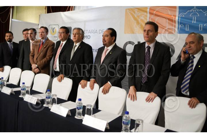 MÉXICO, D.F., 17JUNIO2013.- En un hotel del centro de la ciudad de México, se llevó a cabo el informe de los resultados de la actividad turística en la cuidad de México en los primeros cuatro meses de este año. En la cual asistieron: Daniel Loeza Treviño, presidente de Canirac, Bathan Poplawsky, presidente de la asociación de hoteles de la cuidad de México, Jorge Hernández Delgado, presidente de la confederación nacional turística, Rafael Millan, consejero internacional Skai México, Miguel Torruco Marqués, secretario de turismo del gobierno del D.F., Armando López Cárdenas, director general del fondo mixto de promoción turística del D.F., Roberto Zapata LL, vicepresidente de turismo de la cámara nacional de comercio de la cuidad de México, Miguel A. Santinelli R, secretario técnico de la comisión de turismo de la VI legislatura de la asamblea legislativa del D.F., y Fidel Ovando, presidente de AMAV. FOTO: ALEJANDRO NEYRA / CUARTOSCURO.COM