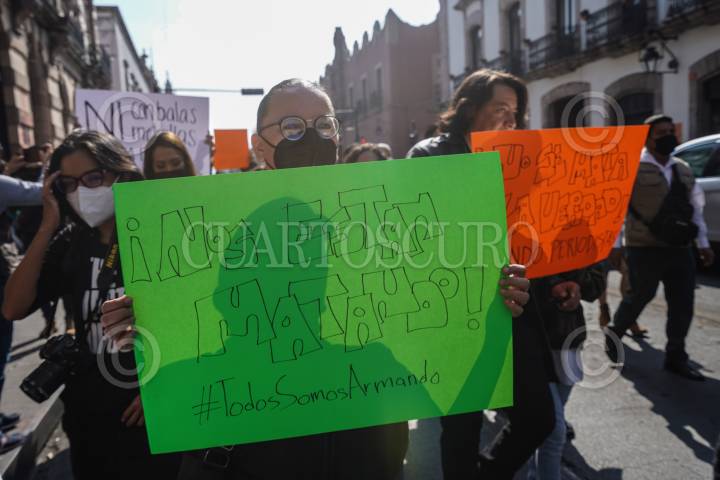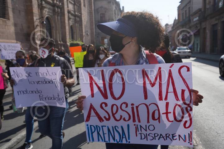 Periodistas de Michoacán se manifestaron por el asesinato de su colega Armando Linares López, director del portal Monitor Michoacán, y los otros siete homicidios de comunicadores cometidos en lo que va de 2022 en México