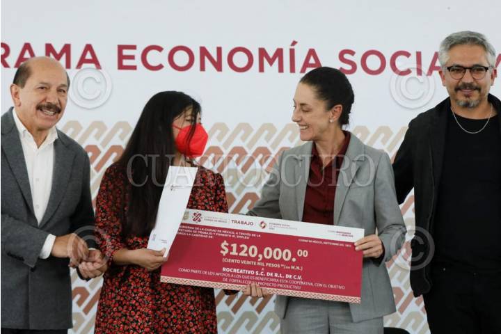 Claudia Sheinbaum, jefa de Gobierno, encabezó la entrega de apoyos de 120 mil pesos para 126 sociedades cooperativas de producción y servicios, que forman parte del programa Economía Social y Solidaria de la Ciudad de México