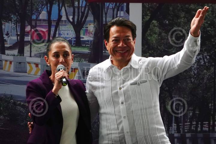 Claudia Sheinbaum y Mario Delgado, durante la presentación de su informe de gobierno por sus 4 años al frente de la ciudad.