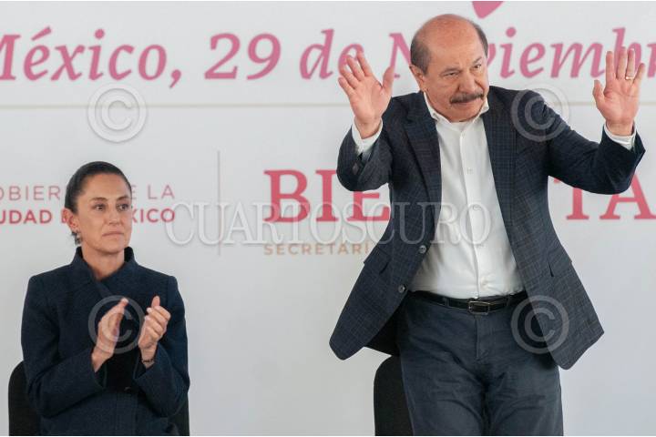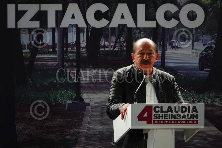 Armando Quintero, durante la bienvenida a Claudia Sheinbaum, en la alcaldía de Iztacalco.