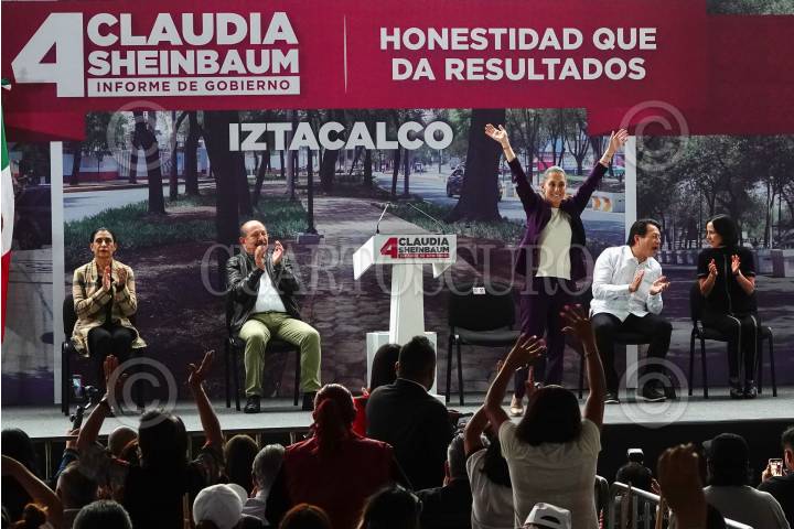 Armando Quintero, Antonio Pérez Garibay, y Claudia Sheinbaum, festeja el 4 Informe de Gobierno de la Jefa de Gobierno en la alcaldía Iztacalco.