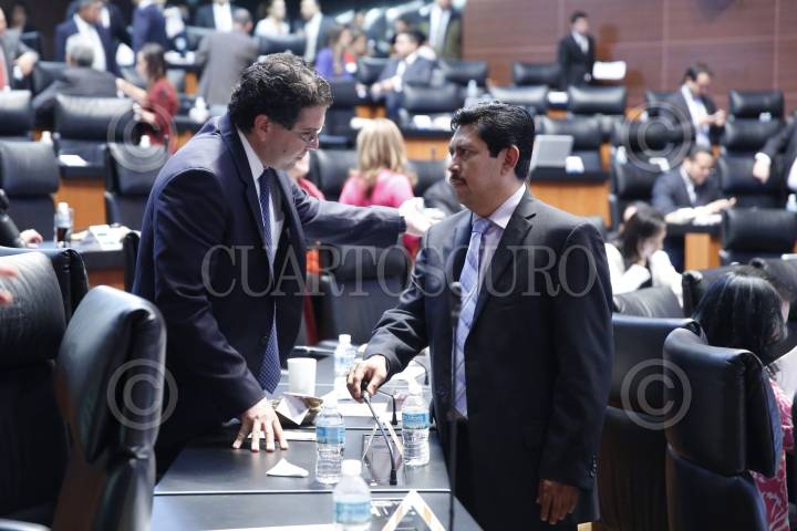 MÉXICO, D.F., 16OCTUBRE2014.- Los senadores perredistas guerrenses Armando Ríos Piters y Sofío Ramírez, en la sesión del Senado. Por la mañana en Chilpancingo amaneció una manta en donde se le acusas al senador Sofío de ser narcosenador. FOTO: CUARTOSCURO.COM