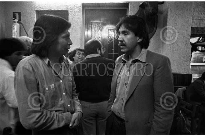 CIUDAD DE MÉXICO, 10JULIO2019.- El escritor Armando Ramírez murió este día, así lo informaron sus familiares, el autor de "Chin Chin el teporocho" había sido internado hace unas semanas en el Instituto Nacional de Neurología y Neurocirugía por una afección en la columna vertebral. En la imagen del 20 de marzo de 1987, conversa con Guillermo Samperio en el Bar La Guadalupana con motivo de los 7 pecados capitales, convocado por el INBA. FOTO: ARCHIVO/ PEDRO VALTIERRA /CUARTOSCURO.COM