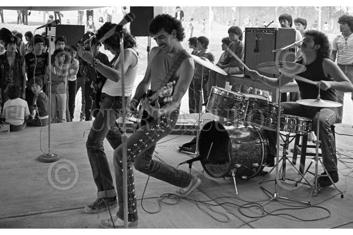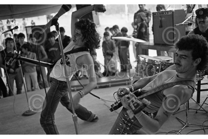 CIUDAD DE MÉXICO, 01ABRIL2019.- El músico Armando Vega Gil, integrante de la agrupación Botellita de Jerez, murió por la madrugada, supuestamente el creador había anunciado su suicidio a través de sus redes sociales, esto tras una denuncia anónima de un supuesto abuso de una menor de edad, en el comunicado que se le atribuye a Vega Gil no reconoce culpabilidad alguna y pide no se culpe de su muerte a nadie. En la imagen de diciembre de 1984, Botellita de Jerez ofrece un concierto en Santa Fé, FOTO: ARCHIVO/ PEDRO VALTIERRA /CUARTOSCURO.COM