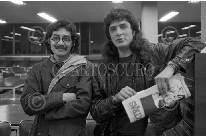 CIUDAD DE MÉXICO, 01ABRIL2019.- El músico Armando Vega Gil (en la imagen a la izquierda), integrante de la agrupación Botellita Jerez, murió por la madrugada, supuestamente el creador había anunciado su suicidio a través de sus redes sociales, esto tras una denuncia anónima de un supuesto abuso de una menor de edad, en el comunicado que se le atribuye a Vega Gil no reconoce culpabilidad alguna y pide no se culpe de su muerte a nadie. En la imagen del 15 de agosto de 1986, junto con el caricaturisra Manuel Ahumada, en la presentación de la Revista Horas Extras. FOTO: ARCHIVO/ PEDRO VALTIERRA /CUARTOSCURO.COM